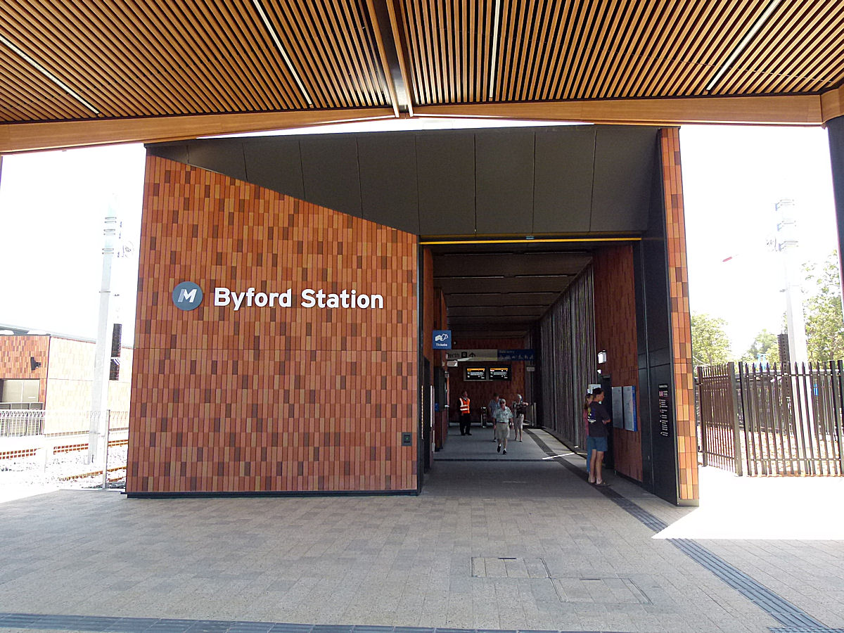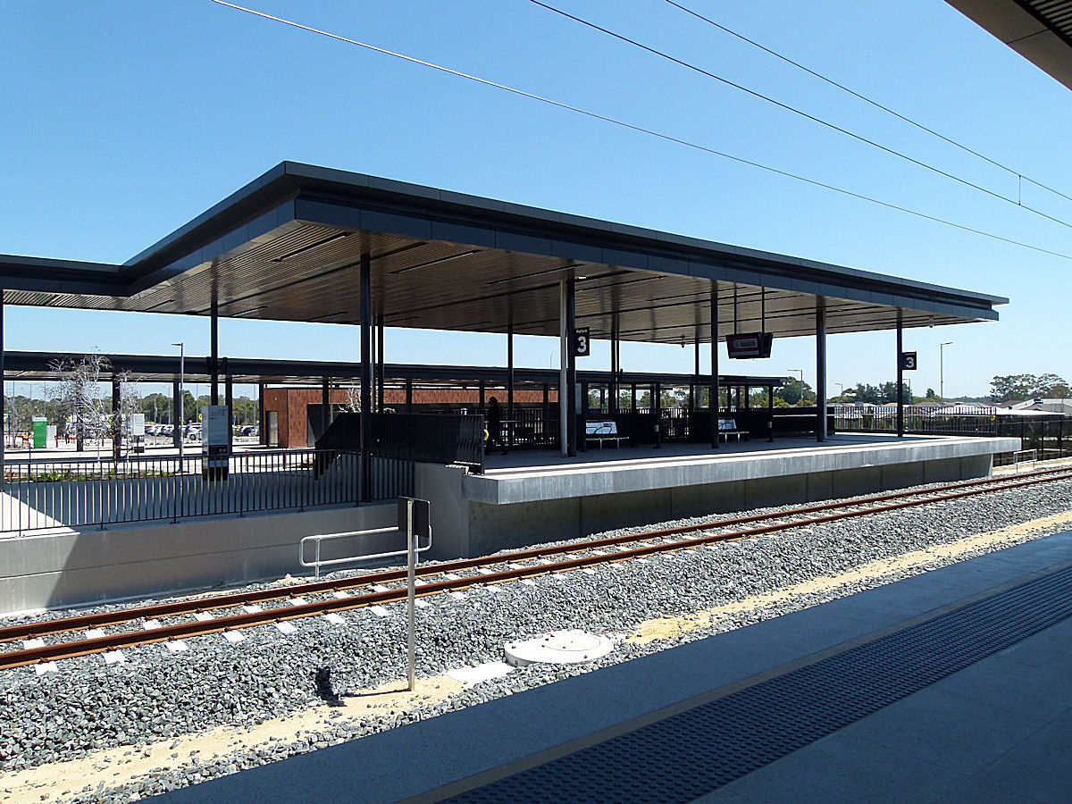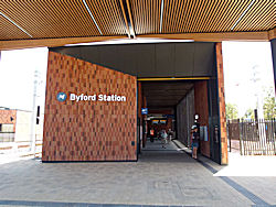 Byford - Railway Station The new Byford Station closer to the town centre, is a far cry from the tiny Australind stopping point south of here at Mead Street. The Armadale line, plus the new electrified extension were re-opened/opened on Sunday 12 October 2025. Photos Ref: BYFD011 |